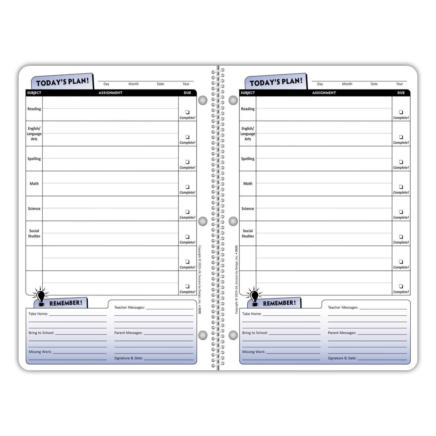 The Daily Planner 5020 makes it easy for upper elementary and middle schoolers to track homework, items to take home and other essential reminders in a format they can relate to. It is more interesting and engaging than generic planners so students are more likely to use it to stay on top of their schoolwork. It also helps students develop crucial organizational skills for academic success.