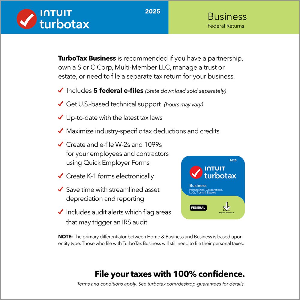 TurboTax 2025 – File your business or trust taxes with 100% confidenceTurboTax coaches you and double checks your return as you go, so you can be confident your business taxes are done right.